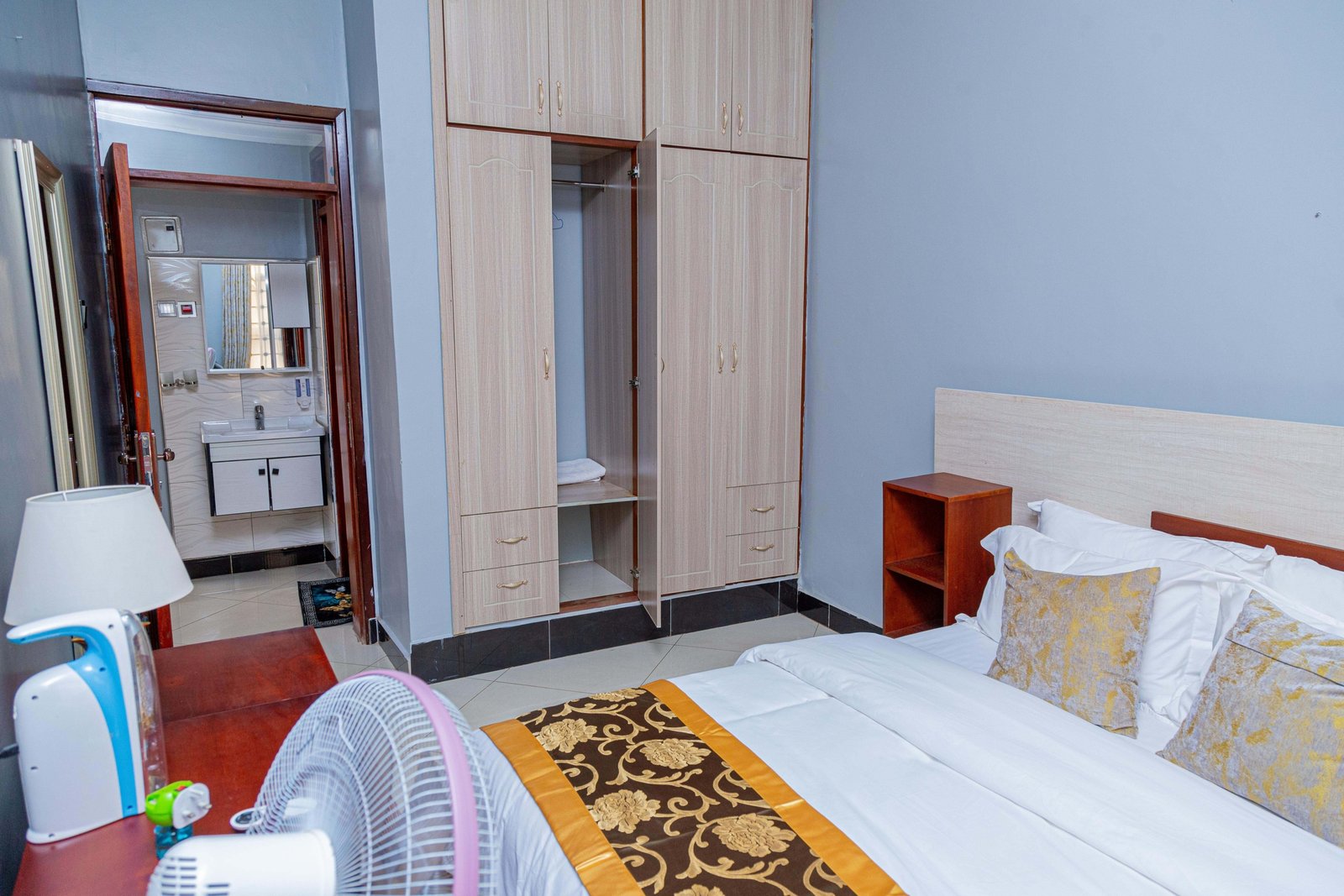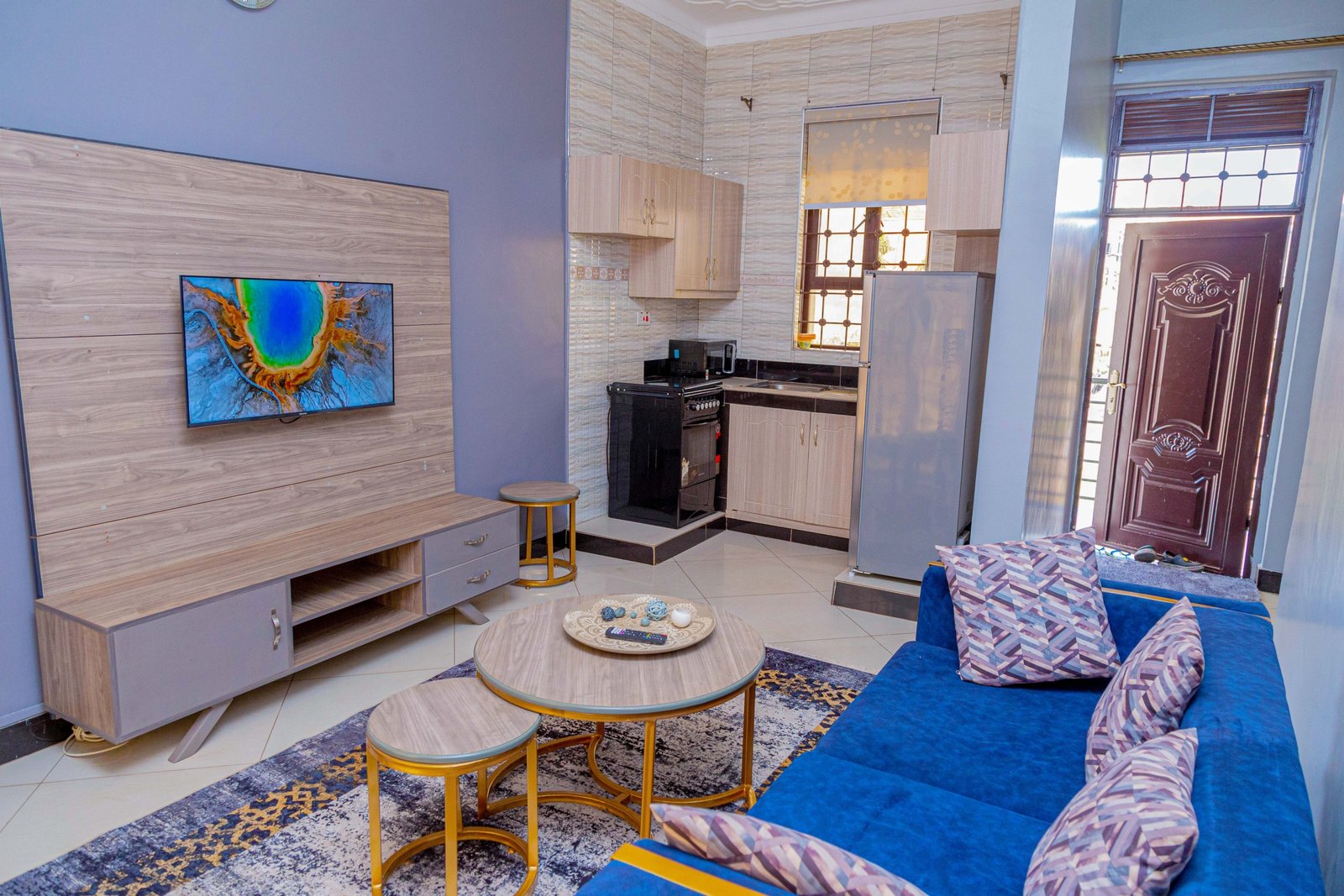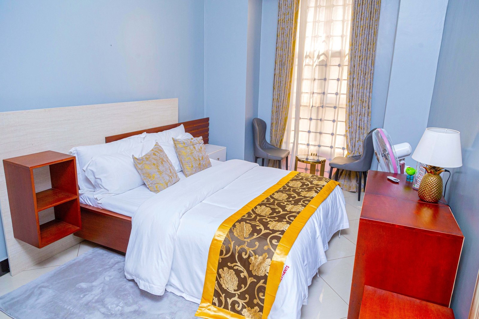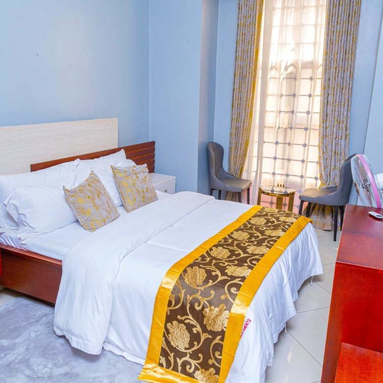 Discover the perfect blend of elegance and comfort in this luxurious city suite. The spacious bedroom, adorned with plush bedding and tasteful decor, promises a restful retreat. Unwind in the inviting living area, where modern furnishings meet vibrant accents, creating a chic ambiance. The fully equipped kitchen offers everything you need to prepare your favorite meals, while the sleek bathroom features contemporary fixtures for a spa-like experience. Step out onto your private balcony to soak in the cityscape, making this suite an ideal haven for both business travelers and vacationers. Secure your stay in this urban oasis today!