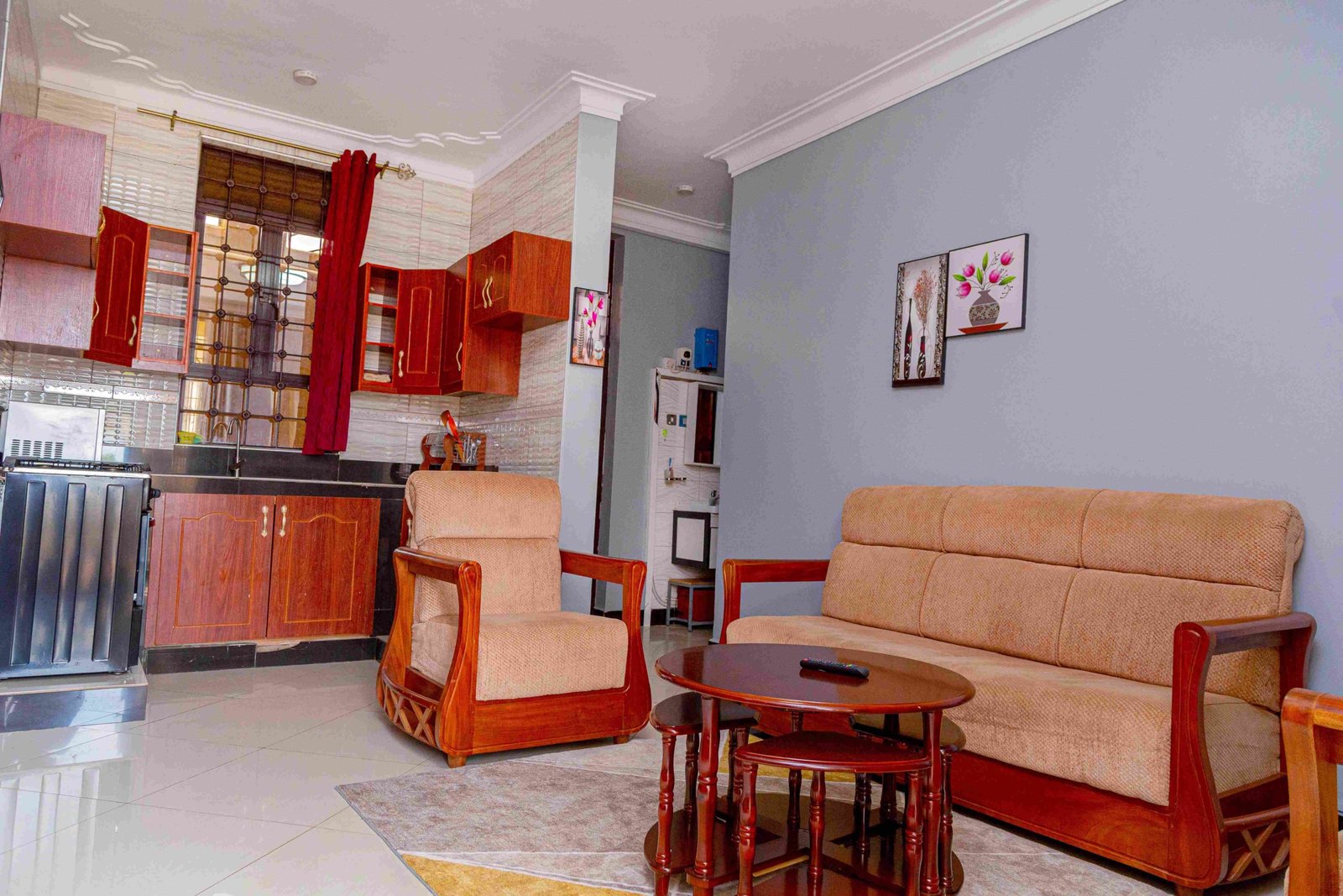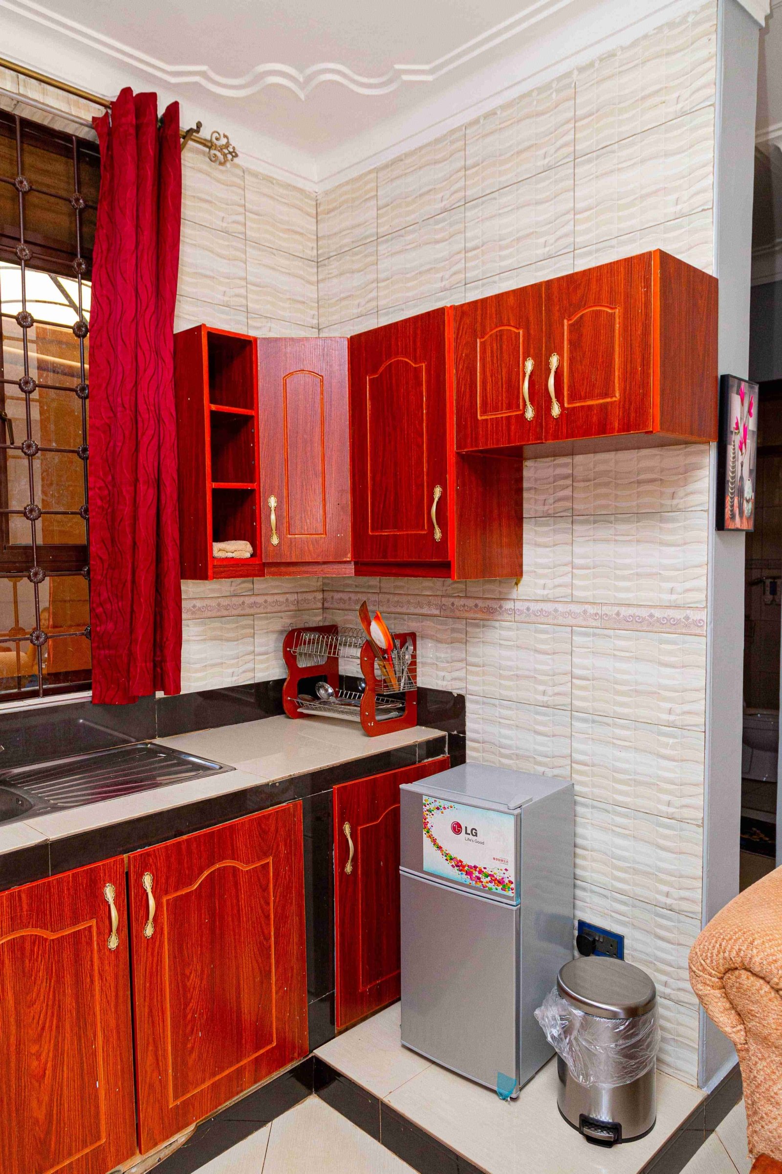 Escape to this stylishly furnished rental unit, perfect for a short stay. Enjoy a restful sleep in a queen-sized bed with fresh linens and vibrant red accents. The unit includes a modern kitchen, a comfortable living area with a flat-screen TV, and a sleek bathroom with a rainfall shower. Relax on the private balcony and soak in the tranquil surroundings. Ideal for both business and leisure, this charming space offers comfort and convenience at an unbeatable price. Book your stay today!