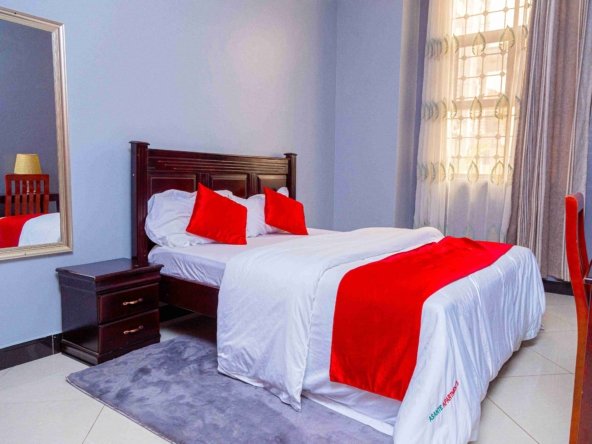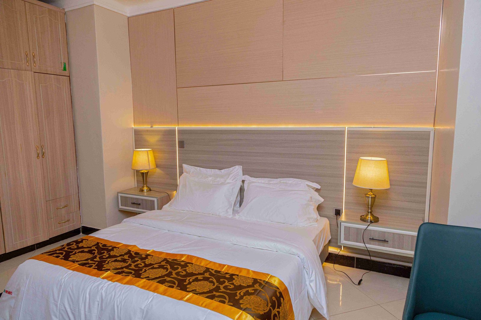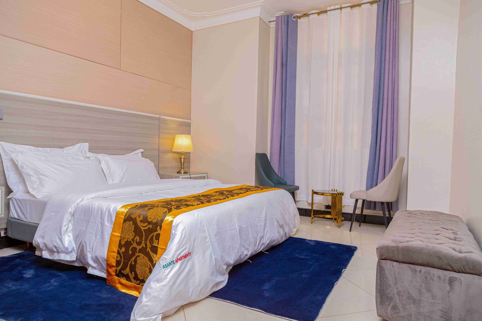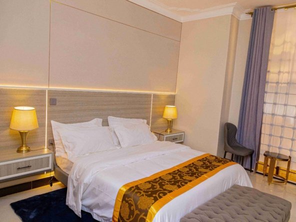 Unwind in this elegantly furnished room, offering a tranquil escape in the city. The spacious bedroom features a luxurious queen bed with crisp linens and a touch of gold for a refined look. The living area is designed for comfort, complete with plush seating and a flat-screen TV. The modern kitchen and bathroom provide all the essentials for a comfortable stay. Step out onto the private balcony to enjoy the fresh air and peaceful surroundings. Perfect for both business and leisure travelers, this unit is a blend of style and comfort. Book your stay today!